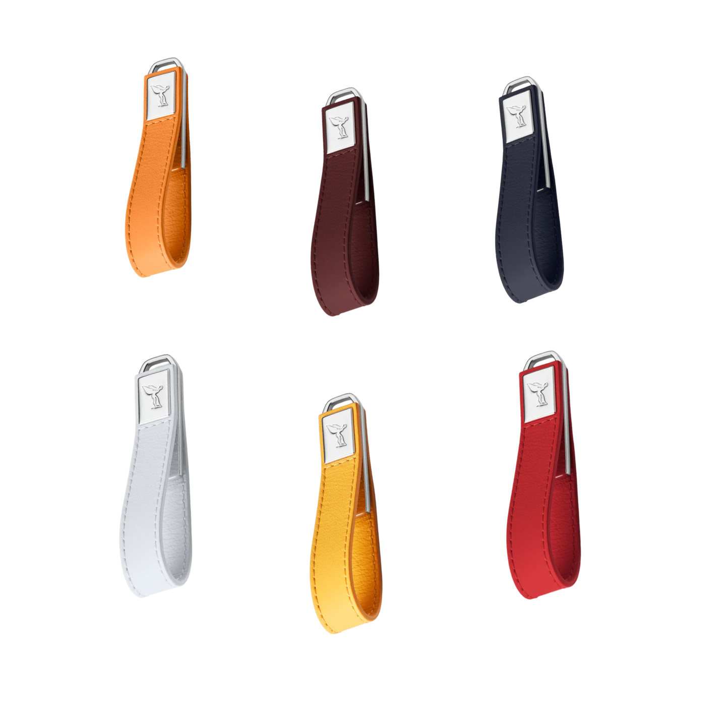 Crafted from Rolls-Royce Natural Grain Leather, this refined keyring is built with a double-layer construction, ensuring both durability and tactile sophistication. Its polished stainless-steel ingot is delicately etched with the iconic Spirit of Ecstasy, a subtle yet distinctive hallmark of excellence. A split ring is included for secure and elegant key attachment.