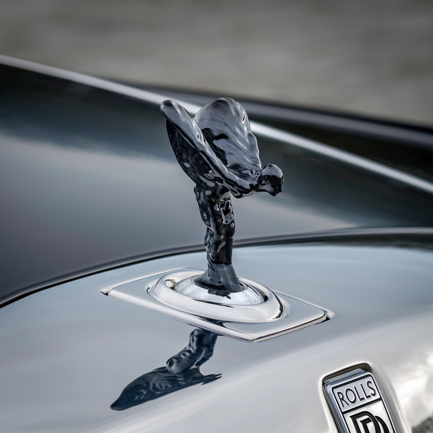 A bold expression for the modern era. The Spirit of Ecstasy is reimagined in carbon fibre—its deep, lustrous black finish reflecting the cutting edge of innovation and design.